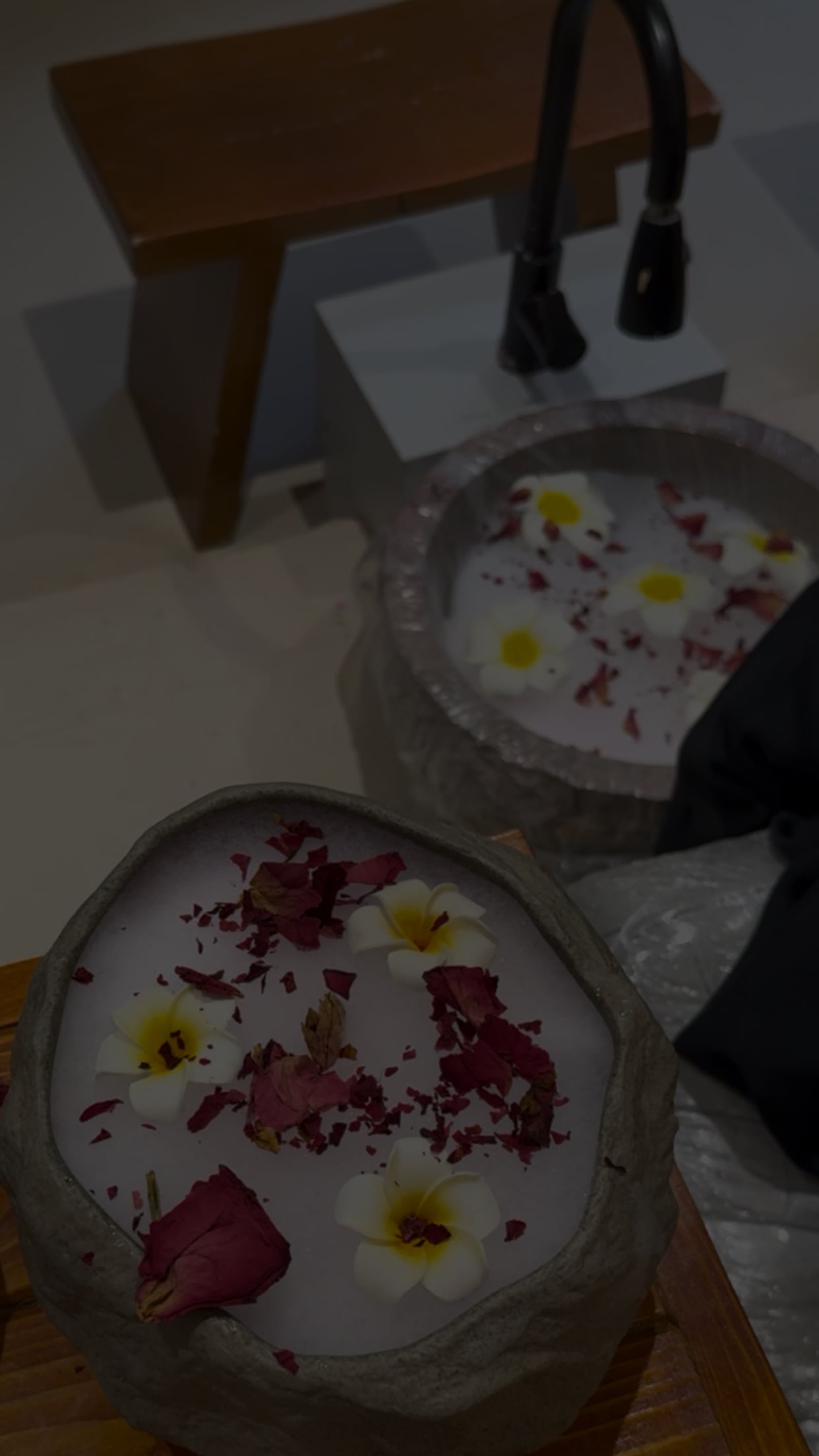 نقع القدمين واليدين بالماء الدافئ والصابون والورد والاملاح ووضع فوار مع الماء ، حك القدمين بمحك استخدام واحد ، قص الزوائد الجلديه وتقليم الأظافر وبردها حسب اختيار الزبونه ، وضع ماسك لليدين والقدمين وترطيب وتوريد.